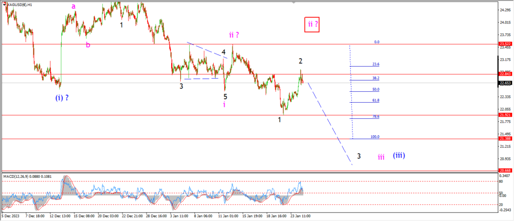 Silver has triggered another count for wave ‘1’ and ‘2’ this evening with a break above 22.84 today.
