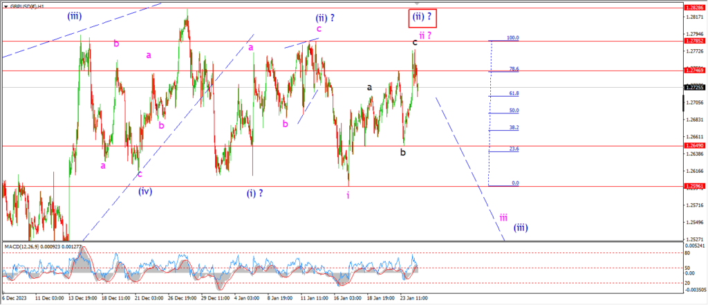 Watch for wave ‘iii’ to begin with a break of 1.2650.