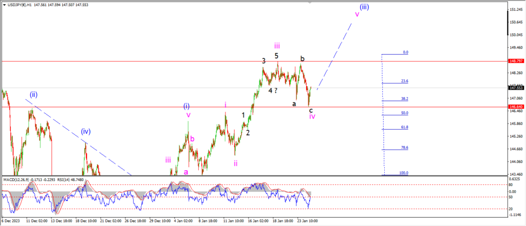The pattern for wave ‘iii’ was broken by the drop today in USDJPY.