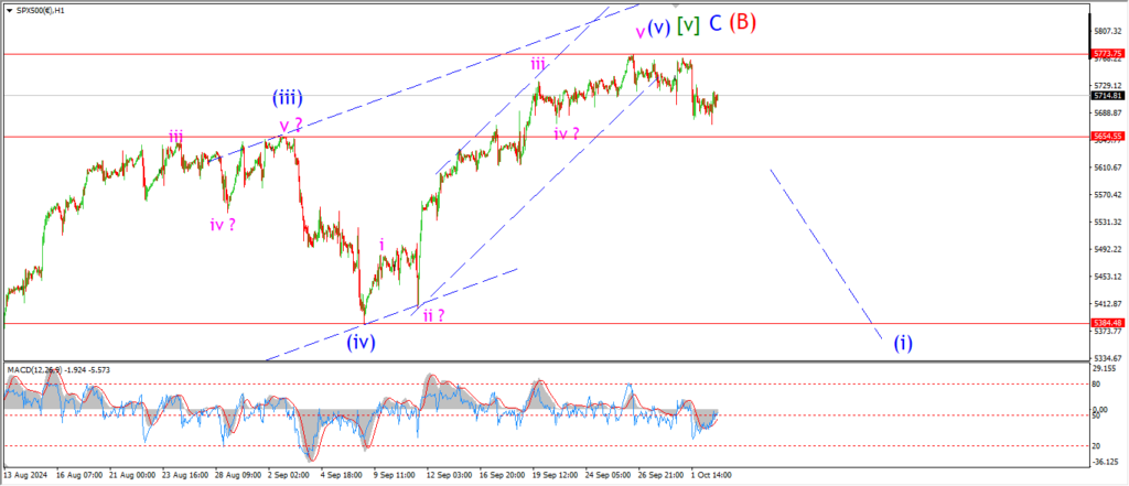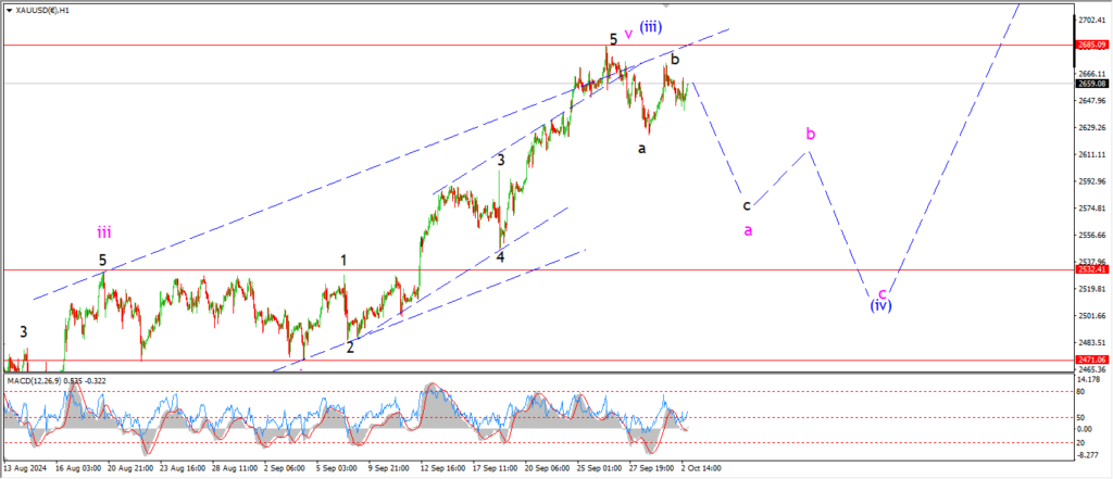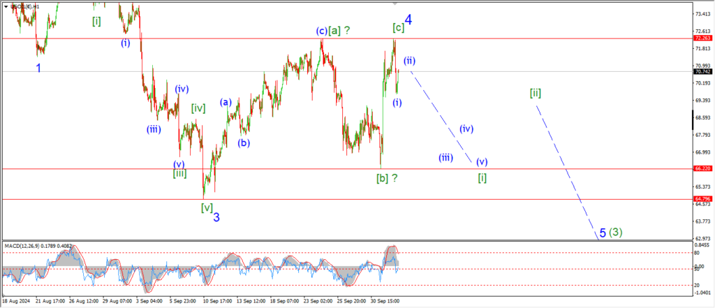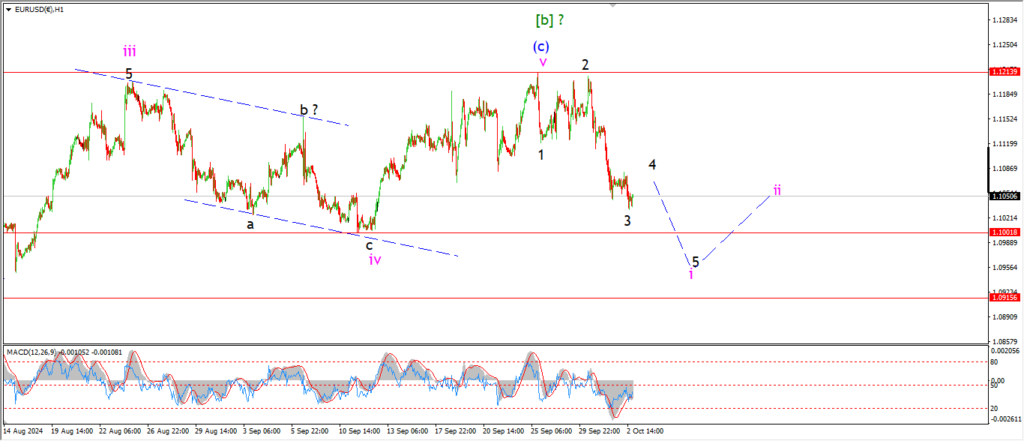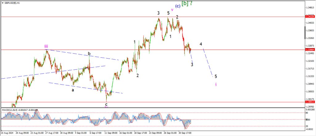 I want to see a clear five wave pattern into wave ‘i’ pink by the close of this weeks trade.