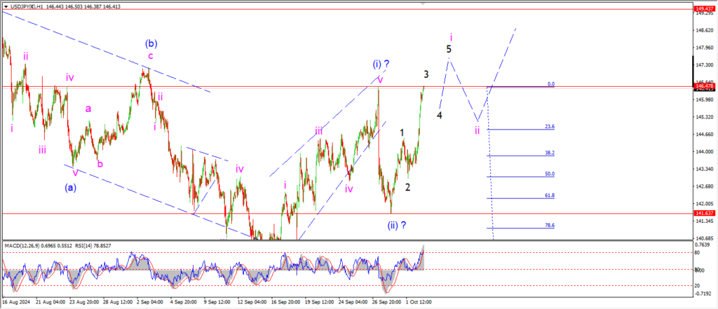 Watch for wave ‘i’ to complete with a break of the high at 146.48.