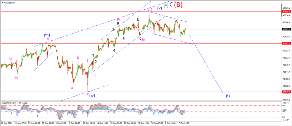 Watch for wave ‘5’ of ‘i’ to finish this pattern near 1.09 and then I can look higher into wave ‘ii’ for the rest of the week.