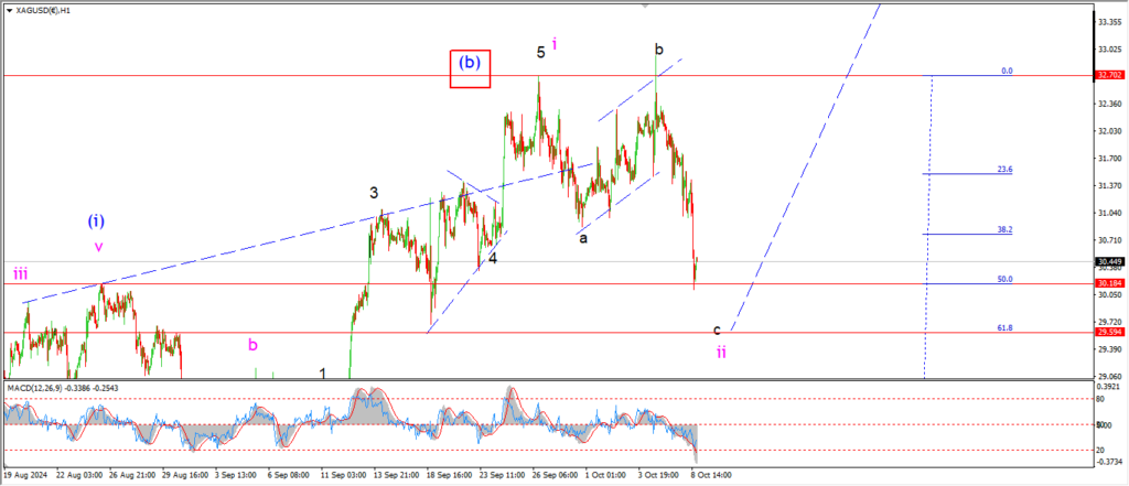 Silver came down today with a nice spike lower in wave ‘c’ of ‘ii’.