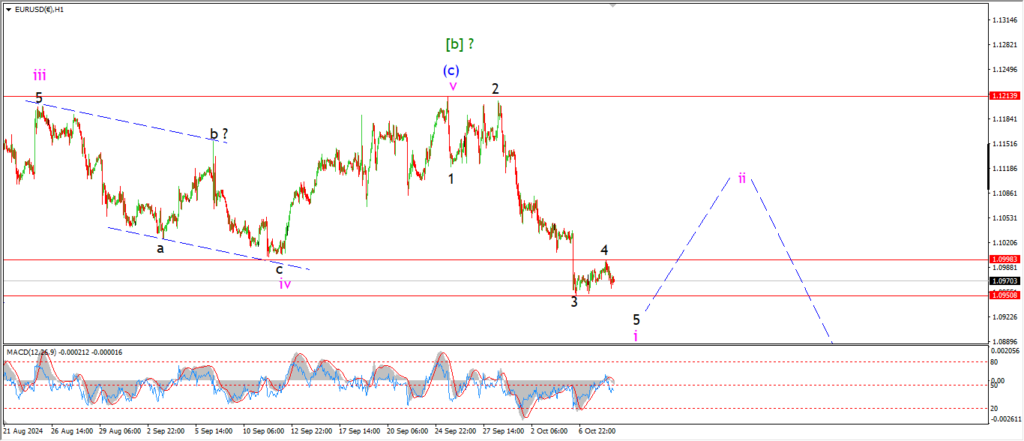 I am looking for a lower target now in wave ‘i’ pink with a possible 1.0900 level for wave ‘5’ now in play.