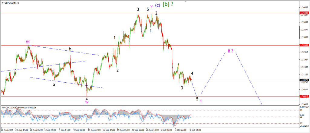 A break of the support at 1.3000 will be a nice way to round out wave ‘i’ but I cant be sure on that.