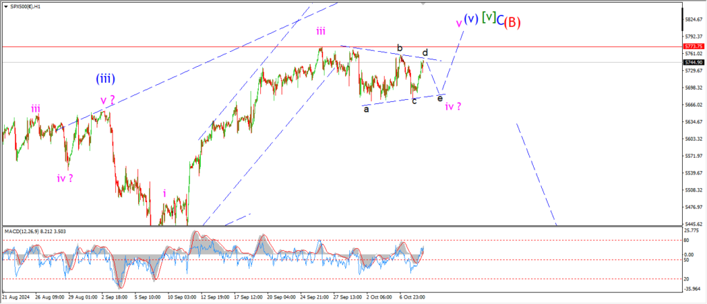 I am looking at a possible triangle for wave ‘iv’ tonight after another day without progress in this pattern.