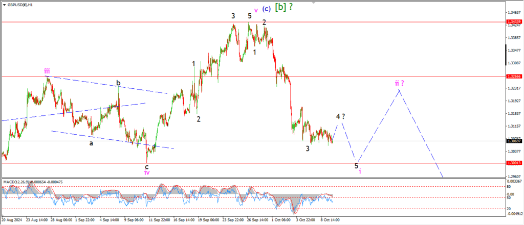 so I am suggesting that wave ‘4’ is still in play here and the price may be stuck in this correction for another day before turning lower again into wave ‘5’.