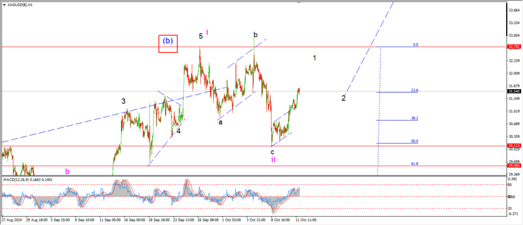Silver extended higher today and that action suggests that wave ‘c’ of ‘ii’ is now complete at this weeks lows.