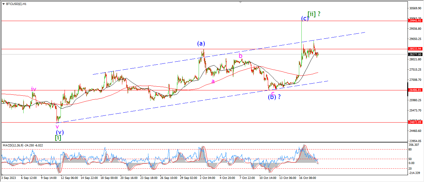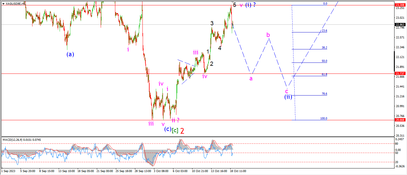 Watch for wave ‘a’ of (ii) to drop off in three waves towards the previous low at 21.74 again.