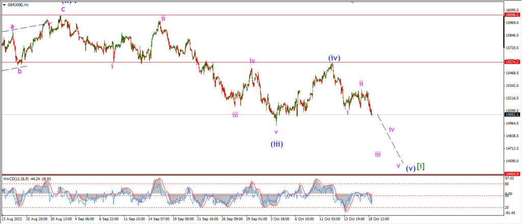 The market has turned down again today off that wave ‘2’ high formed yesterday.