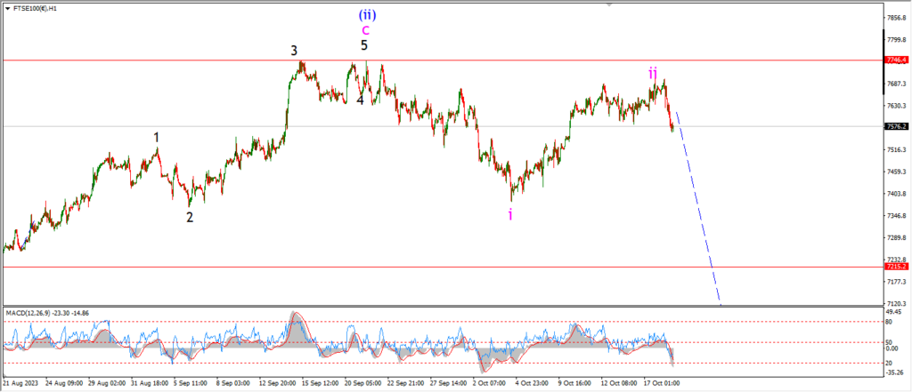 FTSE 100 1hr.