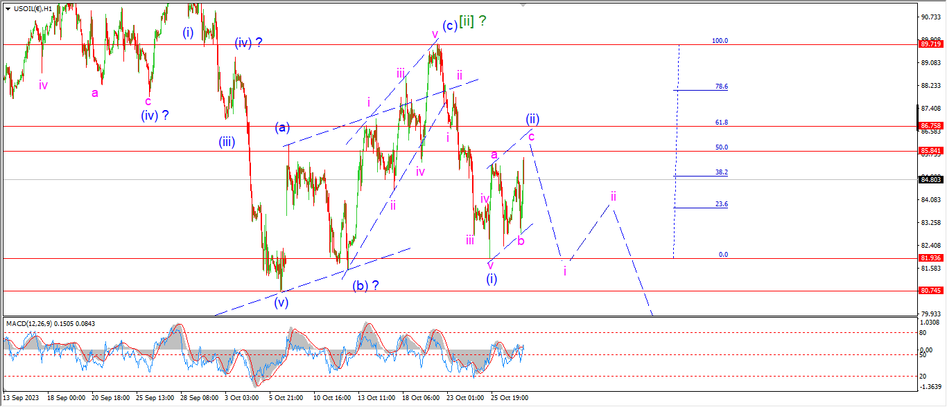 Crude oil has traced out three waves up into the session high tonight so the minimum expected target for wave (ii) has onw been met.