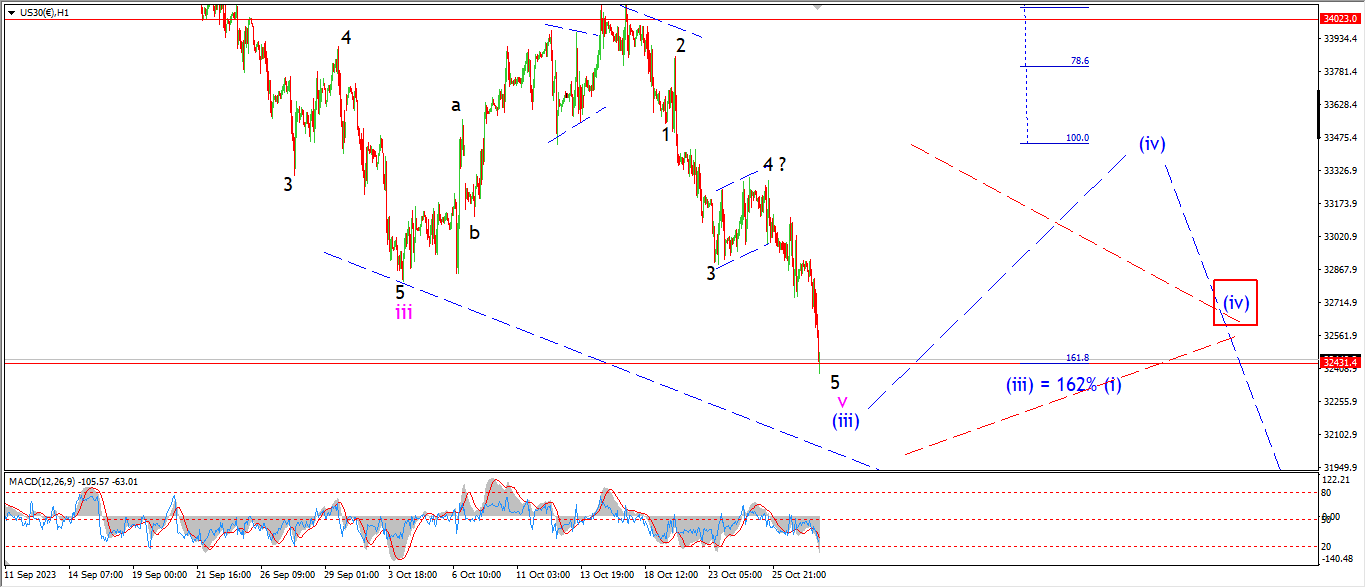 Watch for wave ‘v’ of (iii) to find a low somewhere around that target level at 32430.