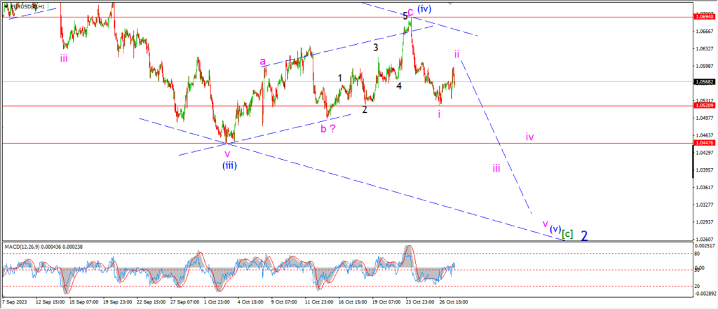 Watch for a break below 1.0520 to signal wave ‘iii’ has begun.