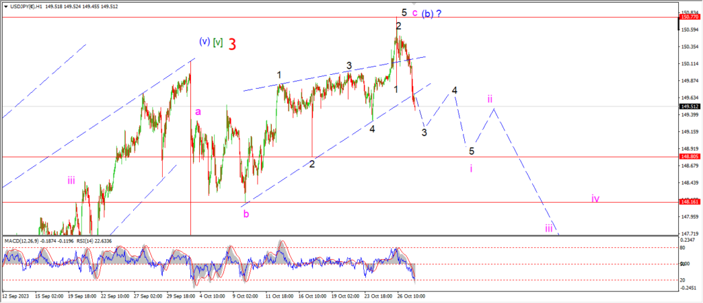 Watch for wave ‘i’ to complete five waves down early next week with a break of 148.00 again.