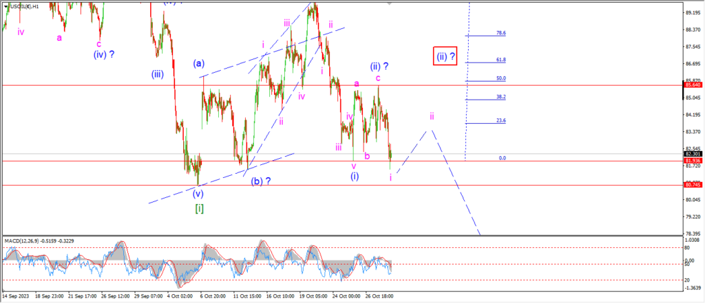 Five waves down into wave ‘i’ is complete now with that sharp move lower this afternoon.