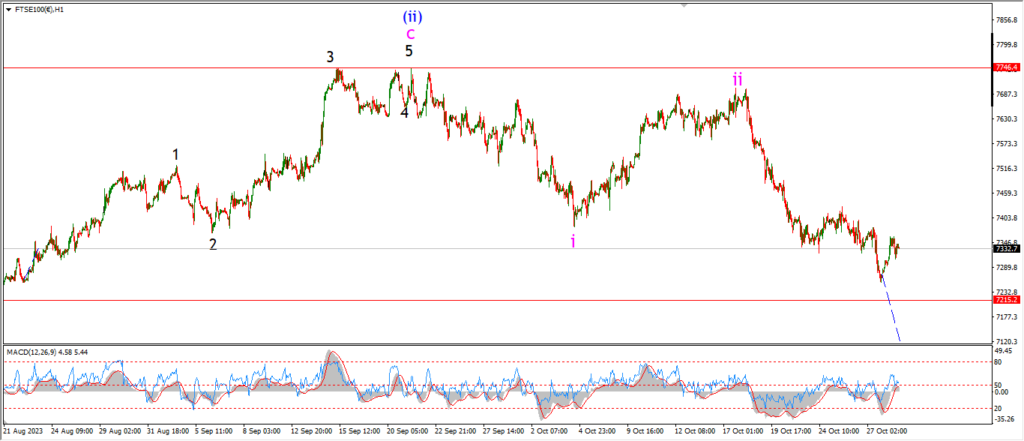 the price is still holding a lower high in wave ‘b’ of (ii) this evening.
