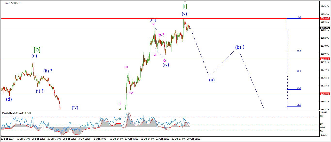 I am looking for a break below 1950 again to signal wave (a) of [ii] is in force.