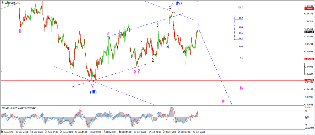 Wave ‘ii’ is about to hit the 50% retracement level of wave ‘i’ this evening.