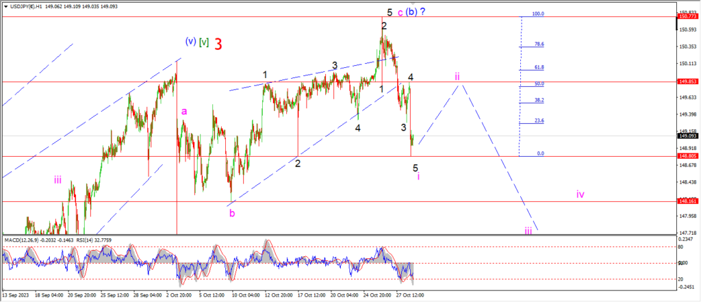 The low of the session hit that target level I was suggesting for wave ‘i’ at 148.80.