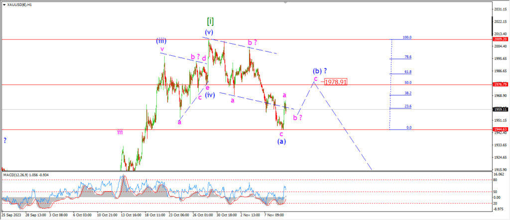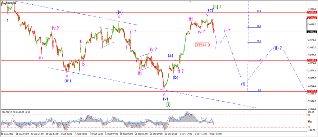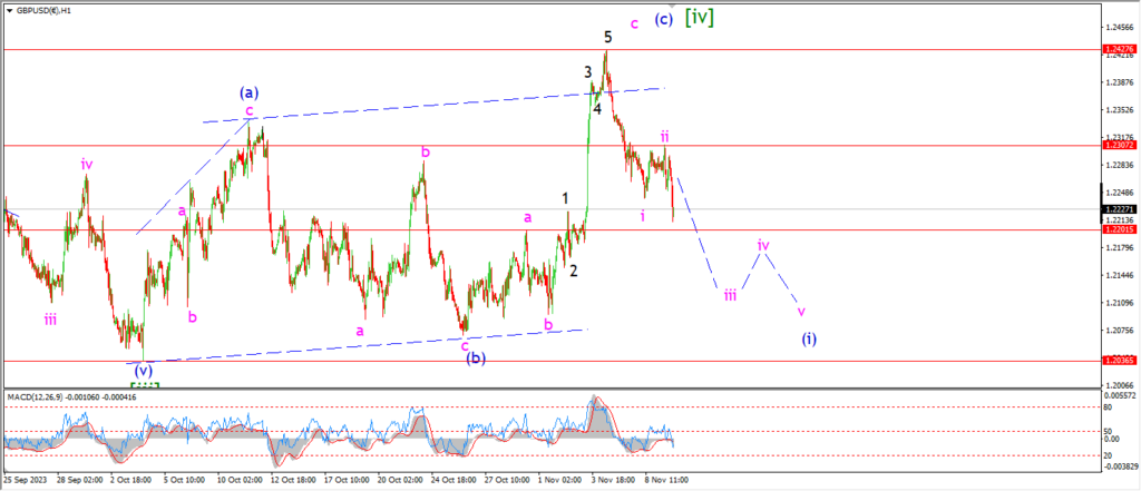 and I am looking at a possible impulse wave down into wave ‘i’ of (i) this evening.