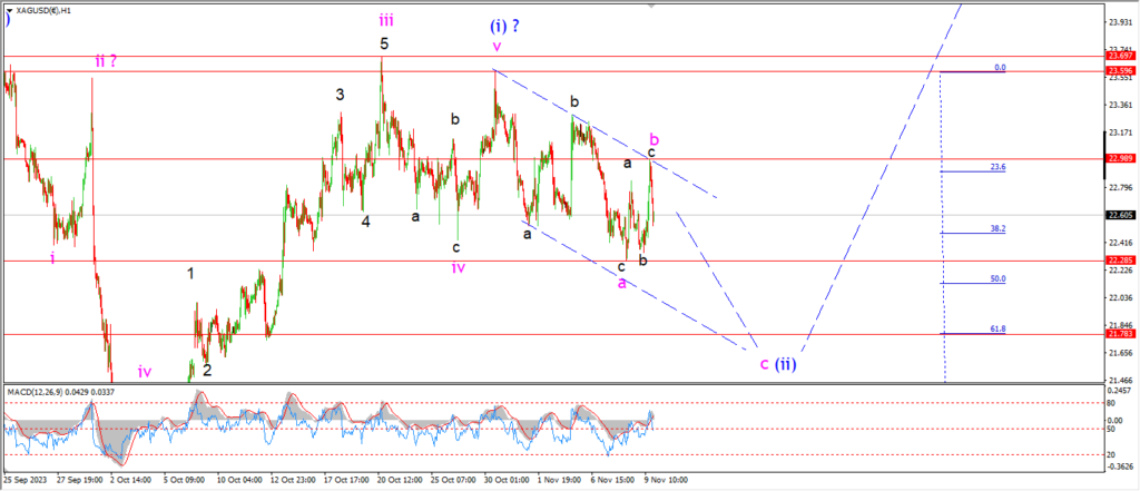 WAtch for wave ‘c’ to continue lower in five waves and hit that minimum target at 22.28.