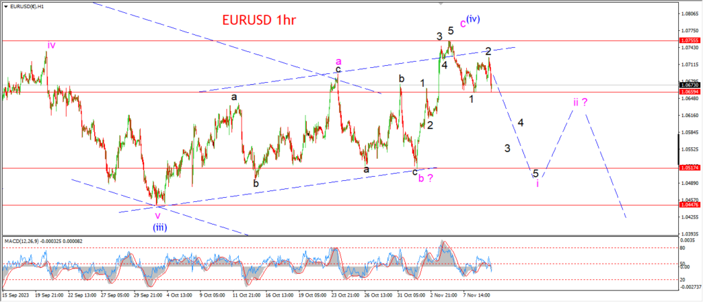 We have a small lower high now in place for EURUSD in wave ‘2’ of ‘i’.