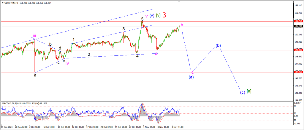 I am thinking about the alternate counts for USDJPY now as wave ‘b’ becomes less and less likely this evening.