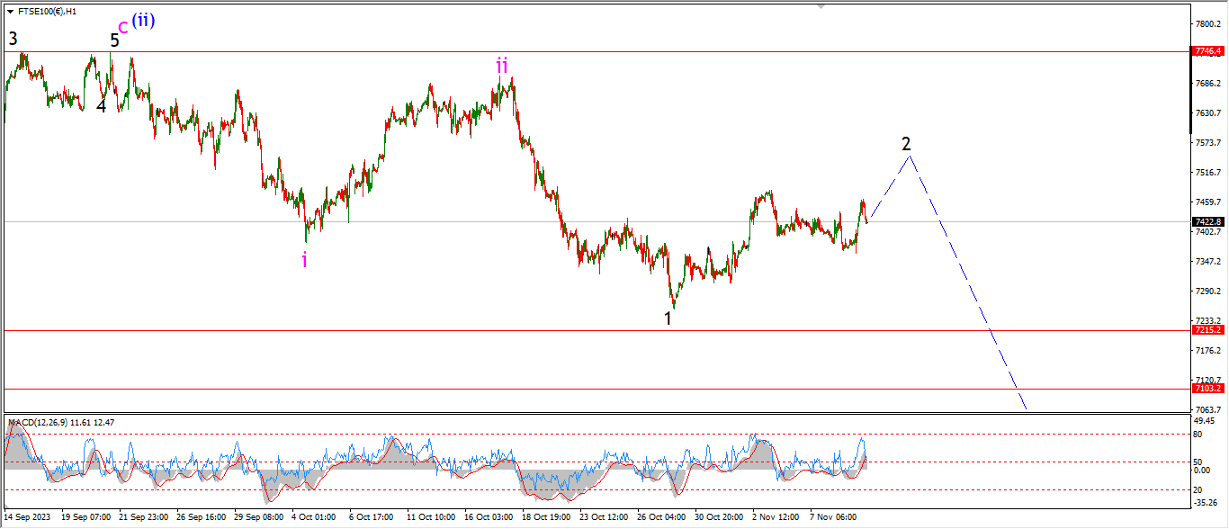 We have a small lower high now in place for EURUSD in wave ‘2’ of ‘i’.