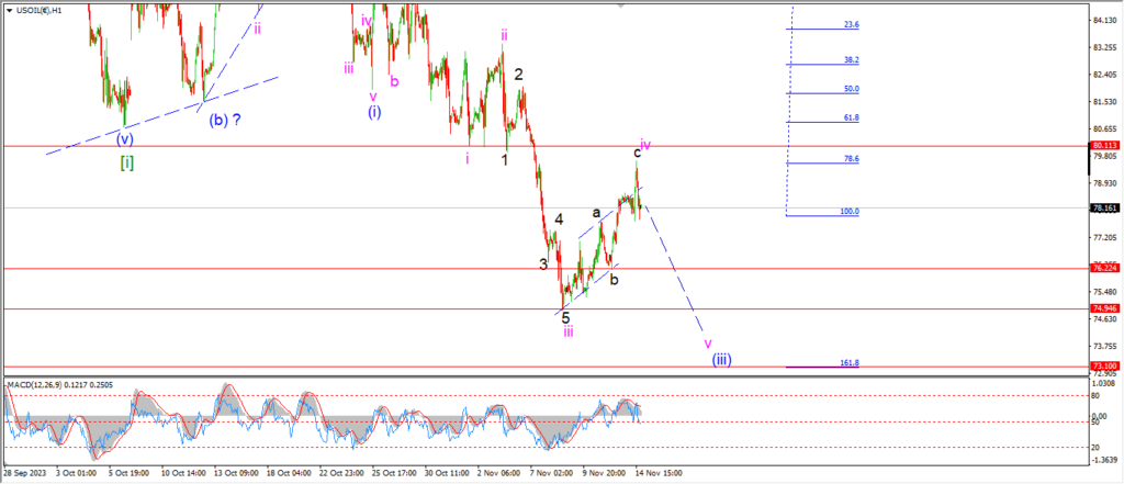 So a break of 76.22 again is the main level I am looking at here to signal wave ‘v’ is underway.