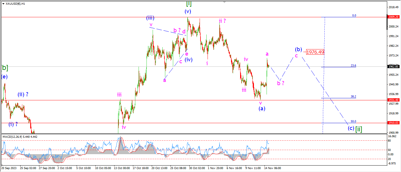 so I am looking for wave ‘b’ to turn lower and form a higher low near 1950 over the next few days as shown.