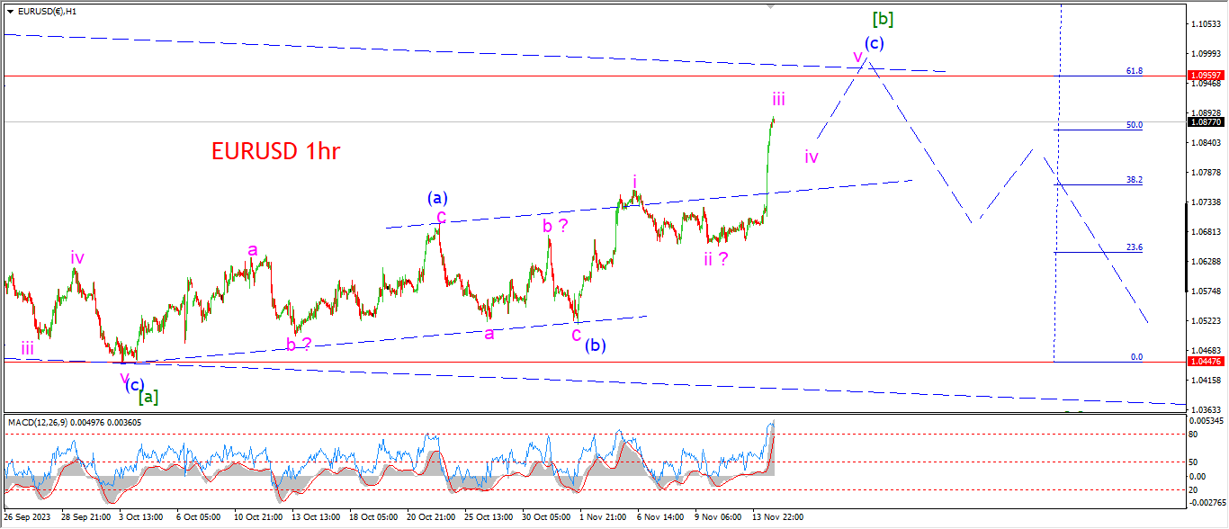 We got a big spike higher in EURUSD today and that has invalidated the short term count now.