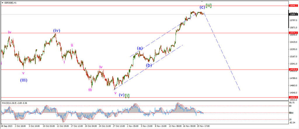 The market is essentially flat since the wave ‘iii’ high on the 15th.