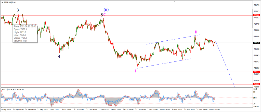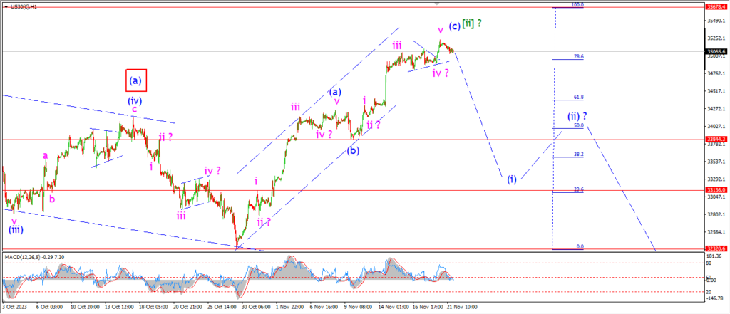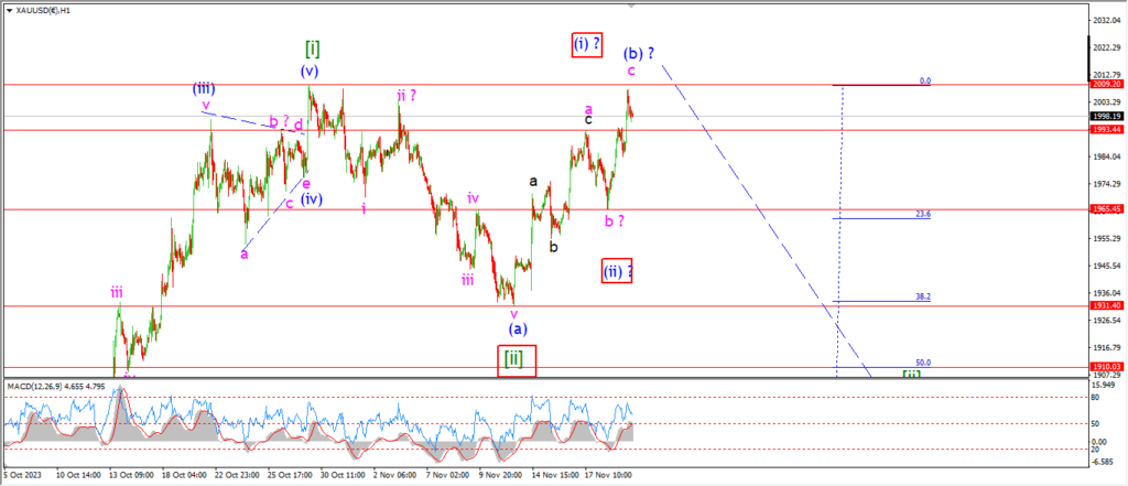 Watch for wave ‘v’ to top out and then wave ‘i’ of (i) to turn lower.