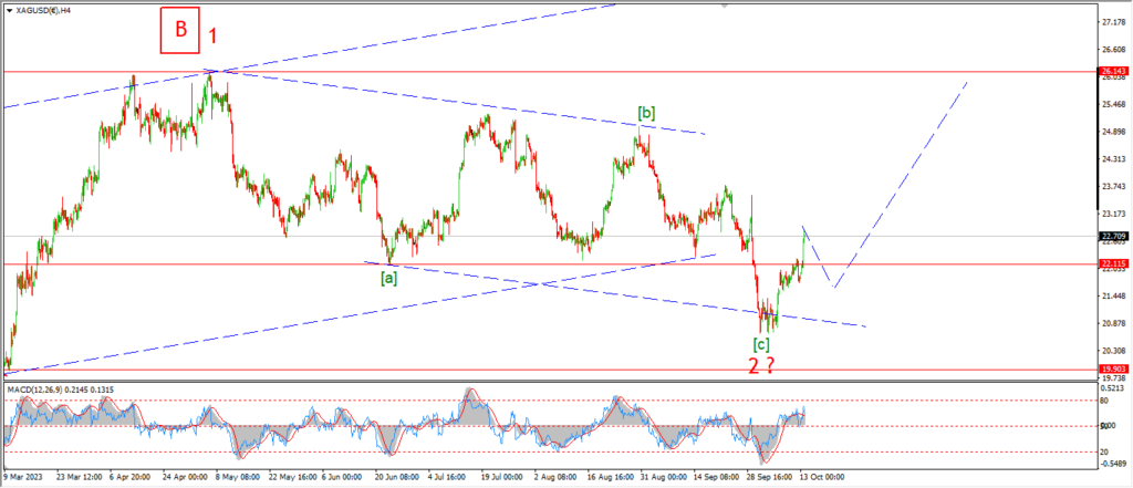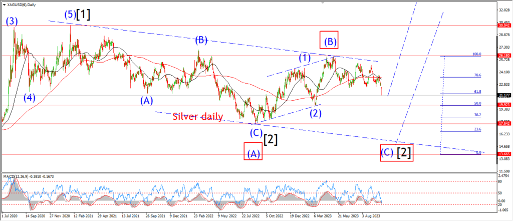 Silver has pushed up to form another lower high today and I have not changed my outlook for wave ‘ii’ here yet,