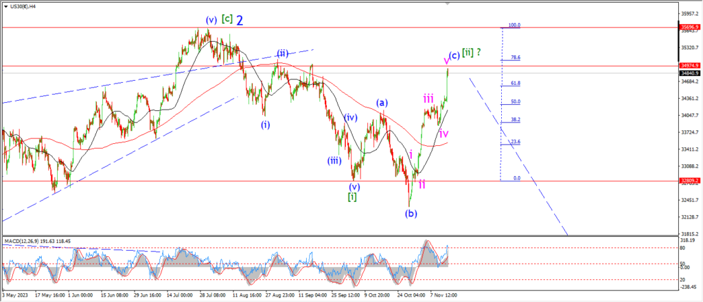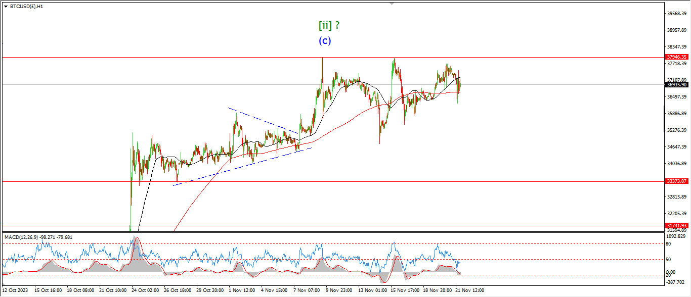 I have set a minimum target for wave (i) at the wave (b) low at 33840.