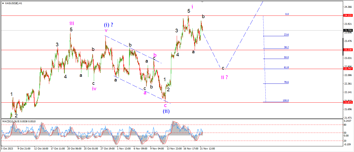 The target for wave ‘ii’ remains near the 62% retracement level at 22.74.