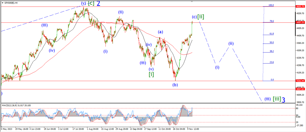 Wave (i) must fall back below the wave (b) low at 4337 to re-affirm this bearish wave count again.