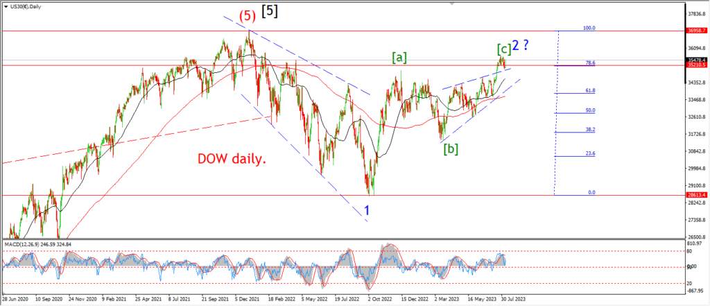 So I am expecting a reversal again this week to suggest wave [c] of ‘2’ is complete.