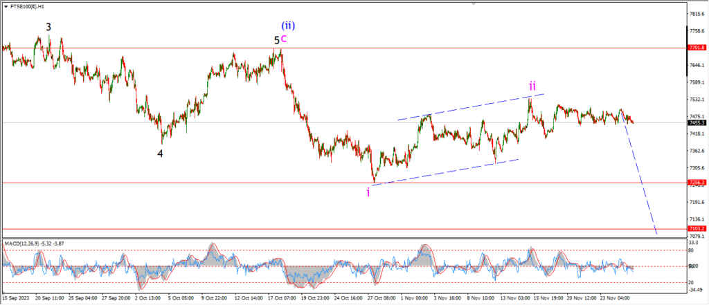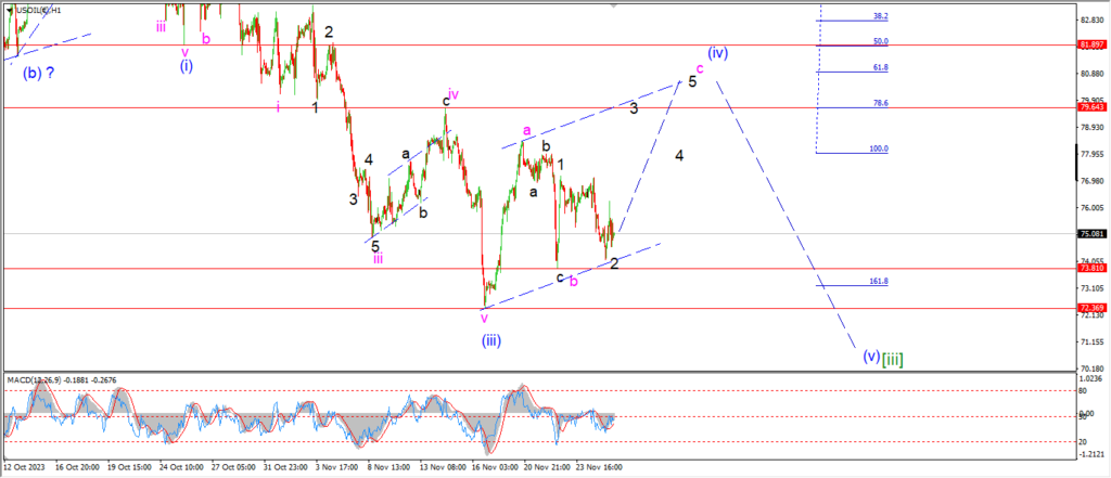 Watch for wave ‘3’ of ‘c’ to turn higher off todays lows to break above the 77.00 handle again.