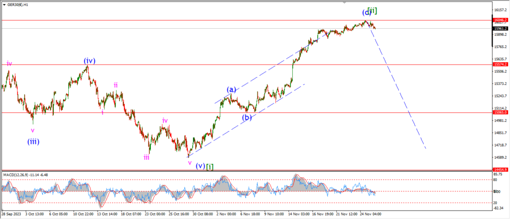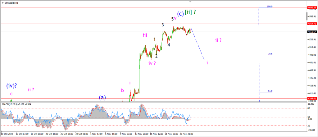 the market pushed higher again today in wave ‘5’ of ‘i’.