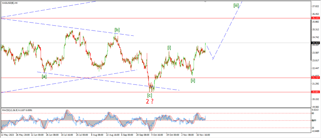 A nice sharp spike lower to break below 1.24 again will be a strong signal that wave ‘2’ red is complete and wave [i] of ‘3’ is beginning.