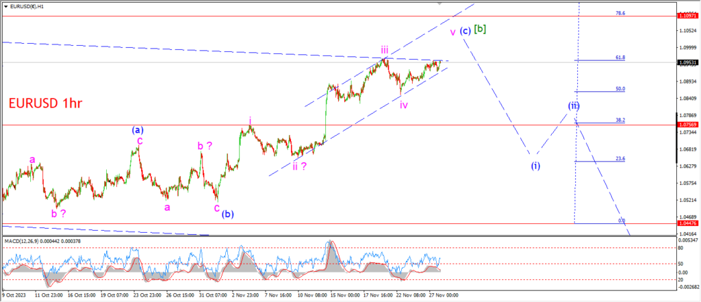 A top in wave ‘v’ should happen near 1.1050 again if the channel is filled in wave (c).