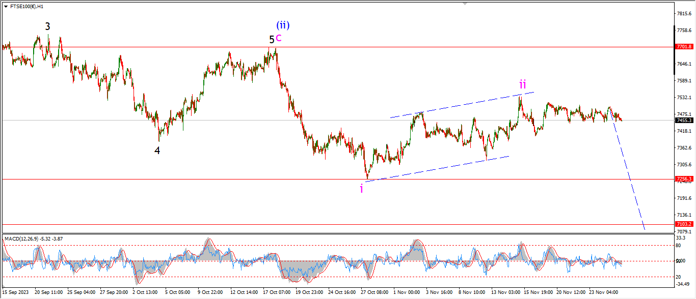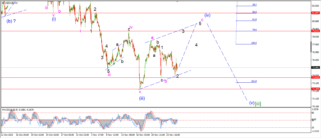 Watch for wave ‘3’ of ‘c’ to turn higher off todays lows to break above the 77.00 handle again.