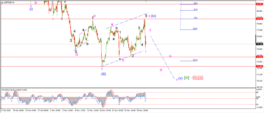 and now a sharp move lower to end the session has retraced over half of the wave (iv) gains.