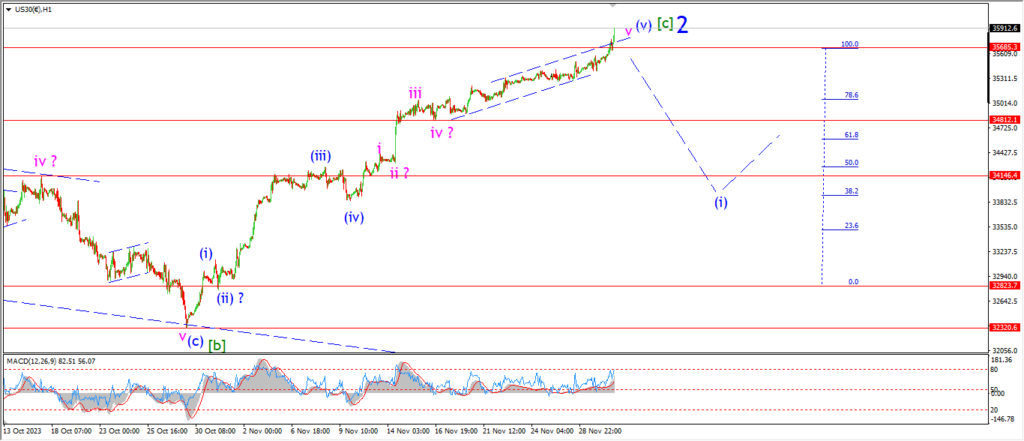 The change in wave count now suggests this high as wave ‘2’ blue.