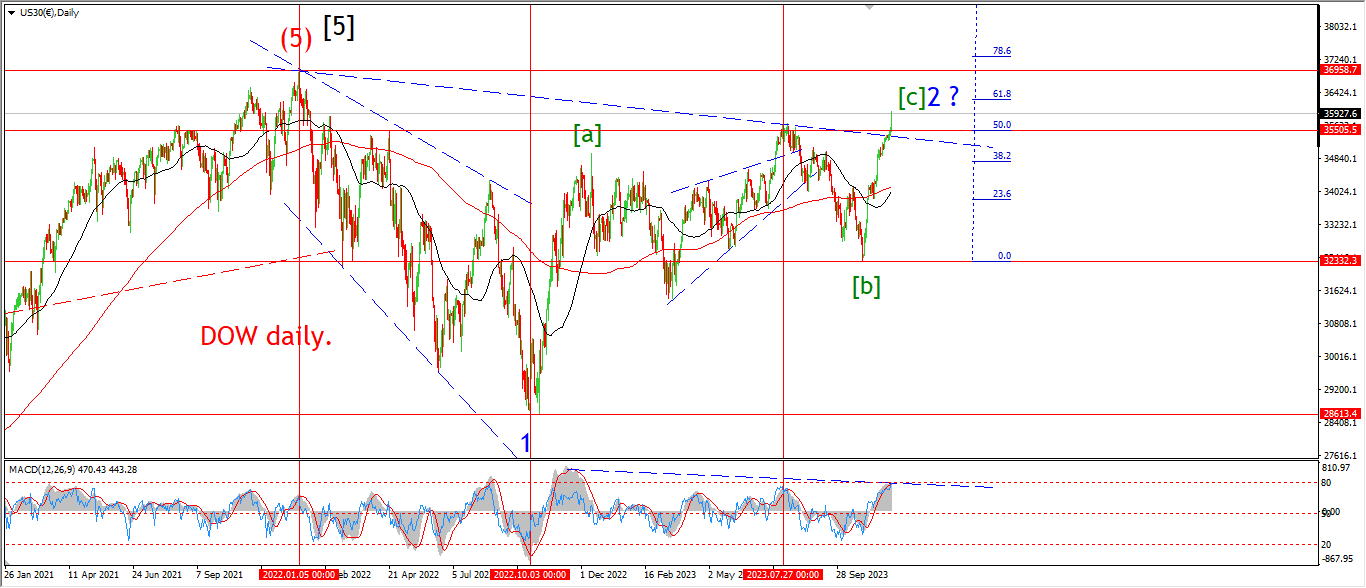 The action todays has triggered the alternate count for the DOW with a break above the previous lower high.