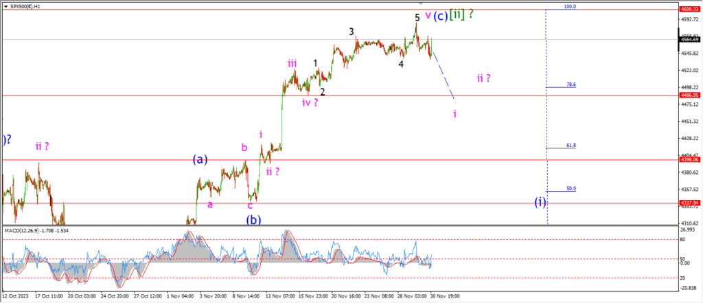 Watch for wave ‘i’ down to continue to fall into initial support at 4486.