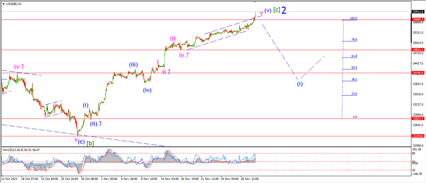 The market has traced out three waves up off this weeks low as we close out this evening.