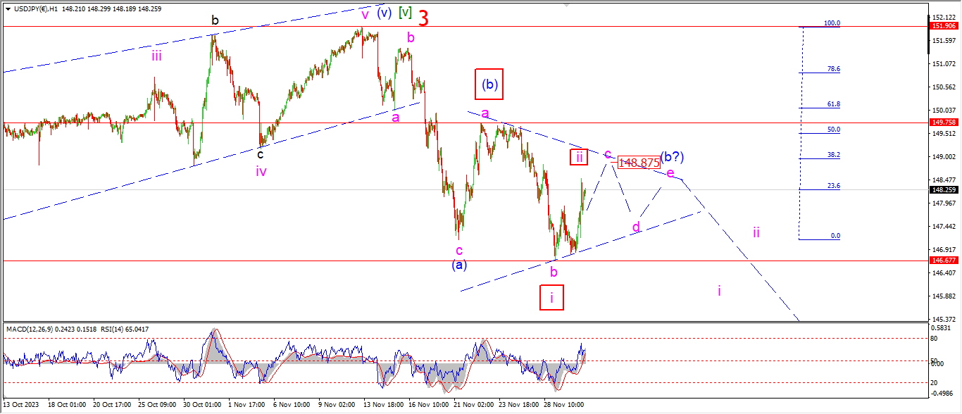 Watch for wave ‘c’ to complete with a small push higher into the 148.80 level.